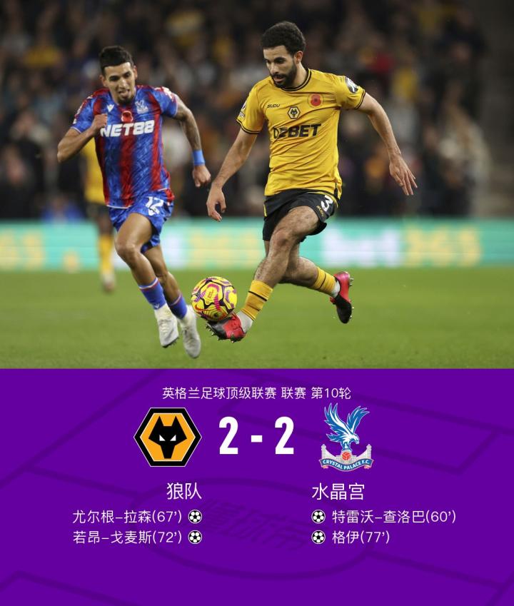 - 360搜索:狼队与水晶宫的英超比赛以2-2战平结束